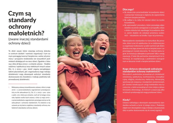 Considering the obligation resulting from the Act of May 13, 2016, on counteracting threats of sexual offenses and protecting minors, to implement standards for entities providing hotel and tourist services, as well as operating other collective accommodation places, in the scope necessary to ensure the protection of minors, and recognizing the important role of business in ensuring respect for Children's rights, especially the right to protect their dignity and freedom from all forms of harm, the hotel adopts this document as a template for standards, principles, and procedures in case of suspicion that a Child staying at the hotel is being harmed and to prevent such threats.